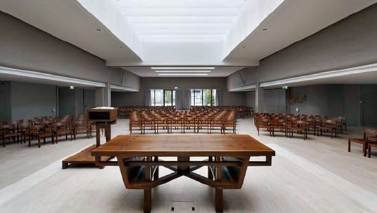 Have you ever noticed that, in movies and television, every time they need to depict a church, they show you a traditional one?  Pews facing forwards, an organ playing in the background, stained-glass windows, statues, and usually a priest or other clergyman in a black suit and white clerical collar?  Why do they bother, if the way we’re supposed to worship looks like this: